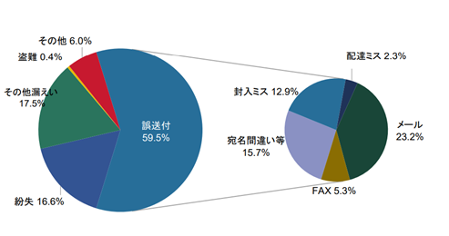 個人情報が漏えいした原因と「誤送付」の内訳